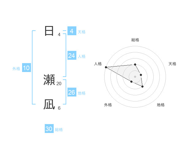 日 瀬凪さんの総格は30画の2点!