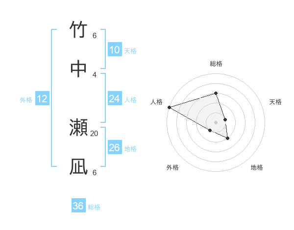 竹中 瀬凪さんを姓名の画数から五運を鑑定