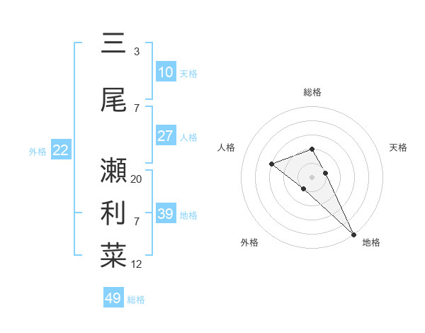三尾 瀬利菜さんの総格は49画の2点!