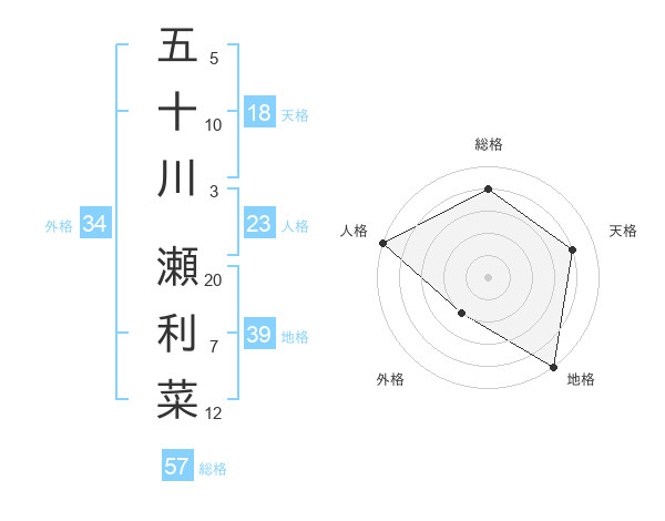 五十川 瀬利菜さんの地格は39画の5点!