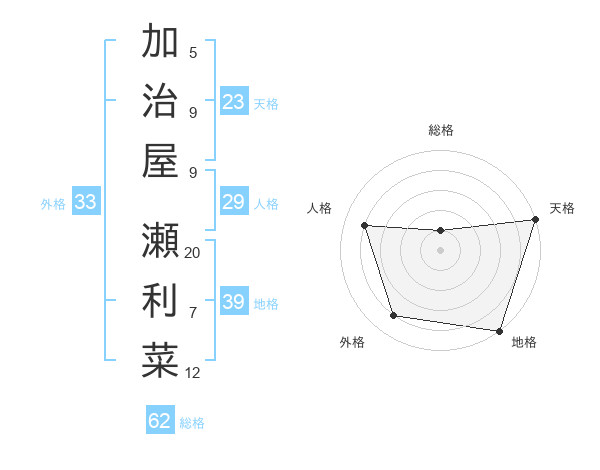 加治屋 瀬利菜さんを姓名の画数から五運を鑑定