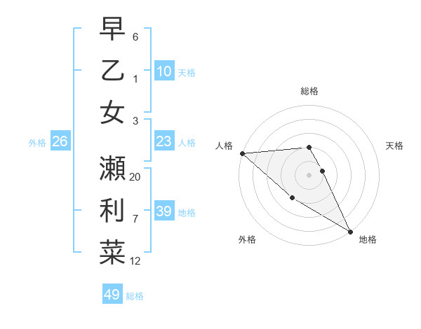 早乙女 瀬利菜さんを姓名の画数から五運を鑑定
