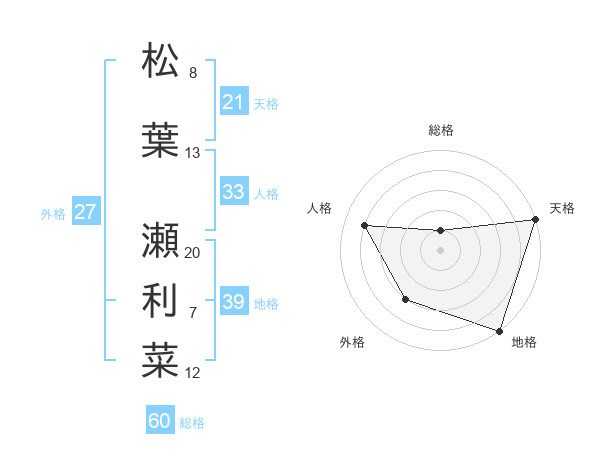 松葉 瀬利菜さんを姓名の画数から五運を鑑定