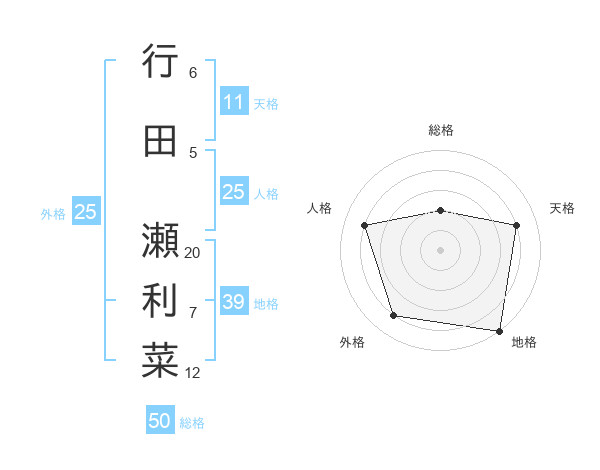 行田 瀬利菜さんを姓名の画数から五運を鑑定