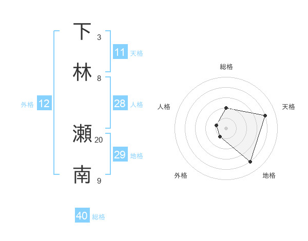 下林 瀬南さんの地格は29画の4点!
