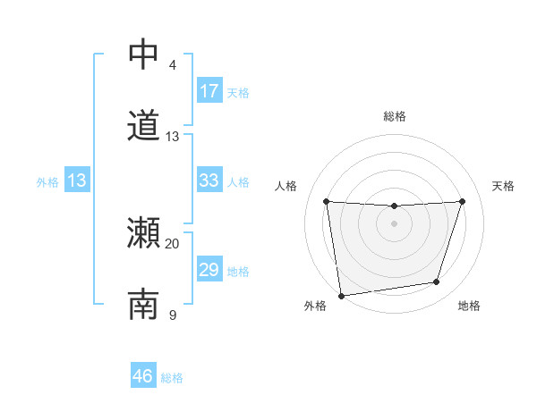 中道 瀬南さんを姓名の画数から五運を鑑定