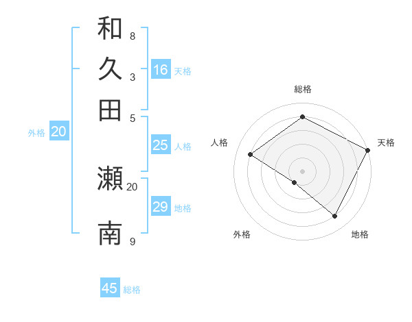和久田 瀬南さんを姓名の画数から五運を鑑定