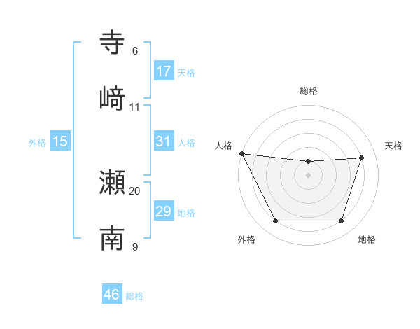寺﨑 瀬南さんの外格は15画の4点!