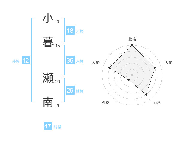 小暮 瀬南さんを姓名の画数から五運を鑑定