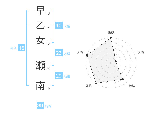 早乙女 瀬南さんの総格は39画の5点!
