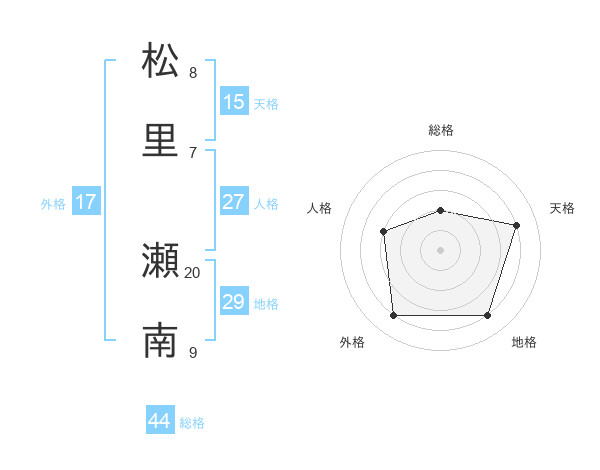松里 瀬南さんの外格は17画の4点!