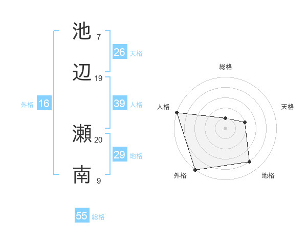 池辺 瀬南さんの人格は39画の5点!
