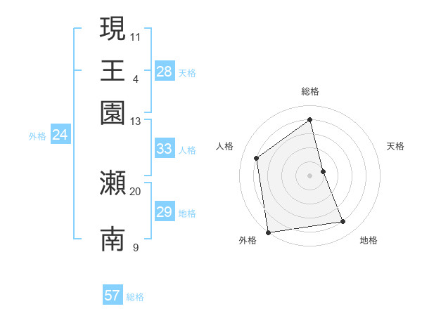 現王園 瀬南さんを姓名の画数から五運を鑑定