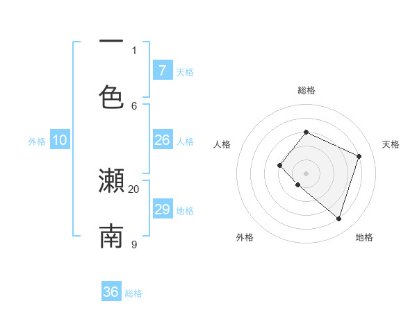 一色 瀬南さんの総格は36画の3点!