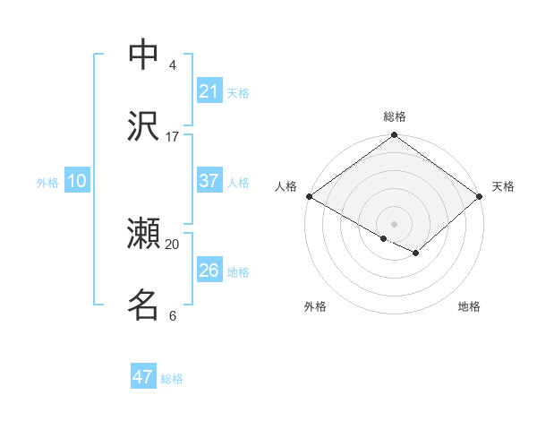 中沢 瀬名さんの総格は47画の5点!