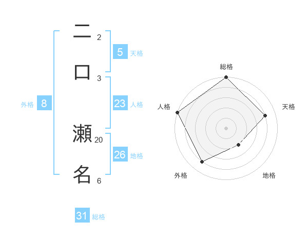 二口 瀬名さんの総格は31画の5点!