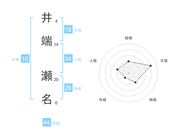 井端 瀬名さんを姓名の画数から五運を鑑定
