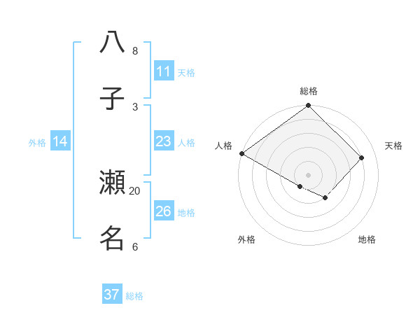 八子 瀬名さんの総格は37画の5点!