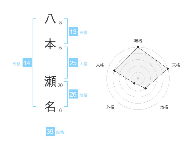 八本 瀬名さんの総格は39画の5点!