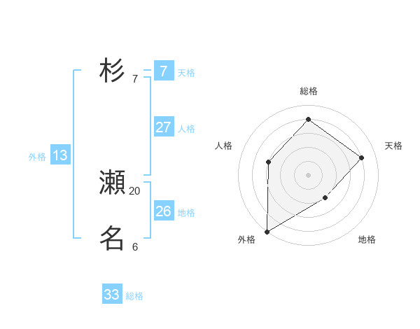 杉 瀬名さんの外格は13画の5点!