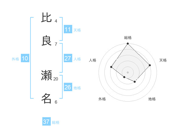 比良 瀬名さんの総格は37画の5点!