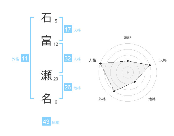 石富 瀬名さんの天格は17画の4点!