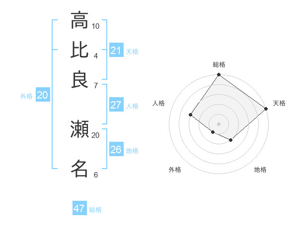 高比良 瀬名さんの天格は21画の5点!