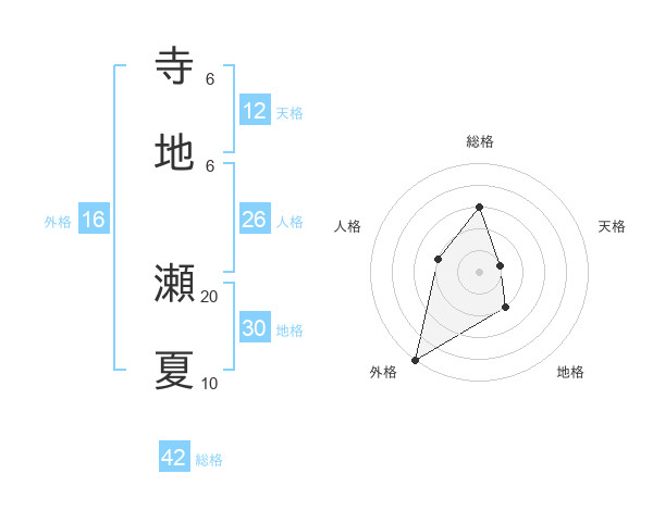 寺地 瀬夏さんの総格は42画の3点!