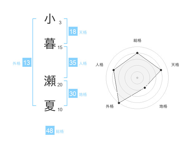 小暮 瀬夏さんを姓名の画数から五運を鑑定