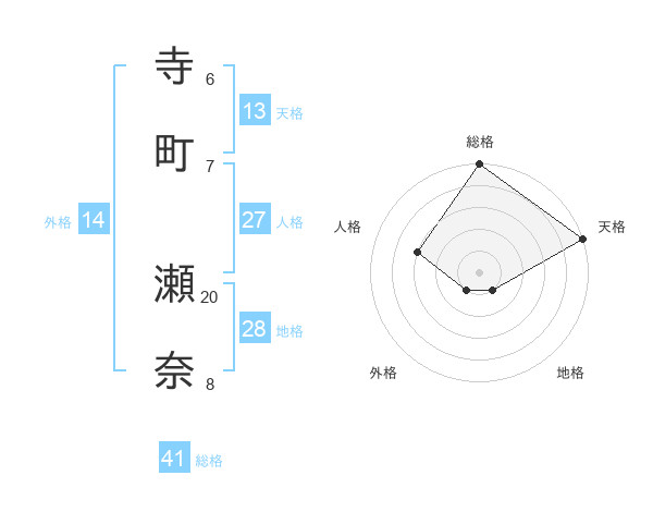 寺町 瀬奈さんの総格は41画の5点!