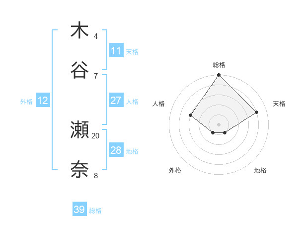 木谷 瀬奈さんを姓名の画数から五運を鑑定