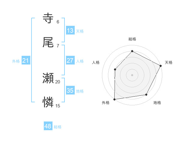 寺尾 瀬憐さんの天格は13画の5点!