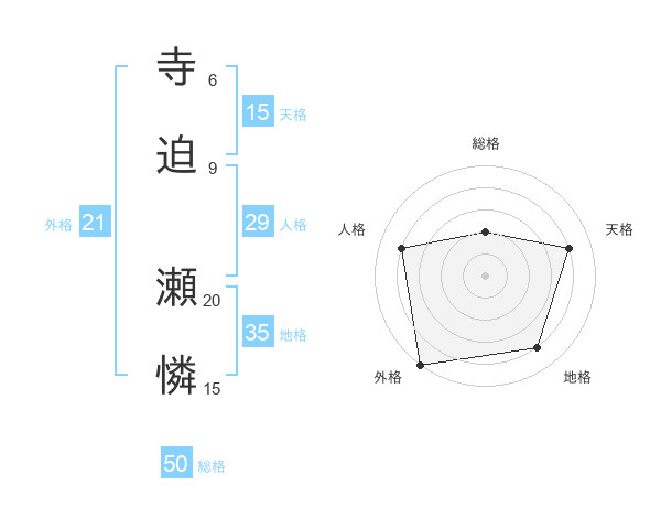 寺迫 瀬憐さんを姓名の画数から五運を鑑定