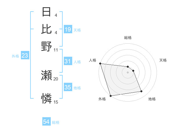 日比野 瀬憐さんを姓名の画数から五運を鑑定