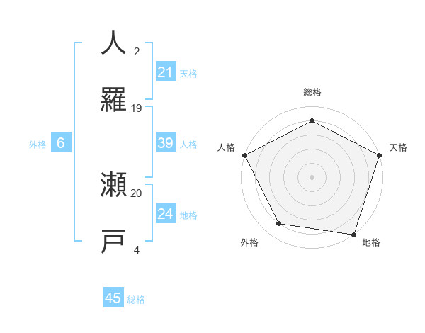 人羅 瀬戸さんを姓名の画数から五運を鑑定