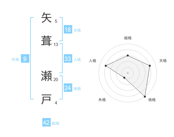 矢葺 瀬戸さんの総格は42画の3点!