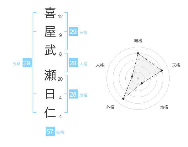 喜屋武 瀬日仁さんの総格は57画の4点!