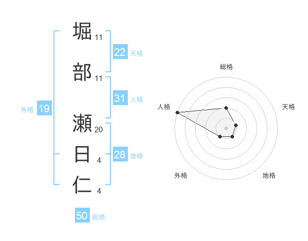堀部 瀬日仁さんの総格は50画の2点!