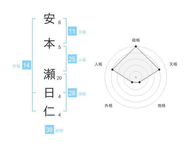 安本 瀬日仁さんを姓名の画数から五運を鑑定