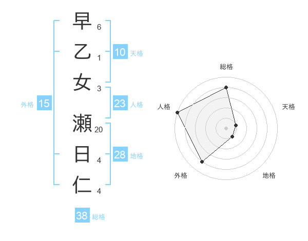 早乙女 瀬日仁さんを姓名の画数から五運を鑑定