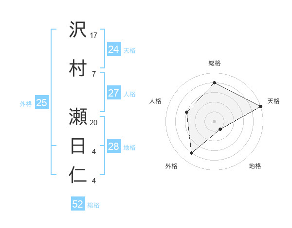 沢村 瀬日仁さんを姓名の画数から五運を鑑定