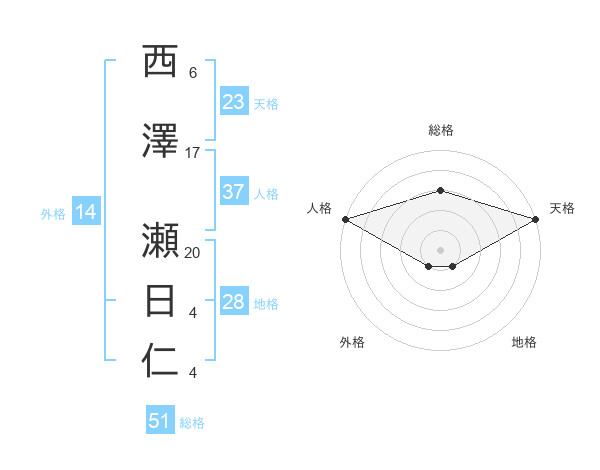 西澤 瀬日仁さんを姓名の画数から五運を鑑定