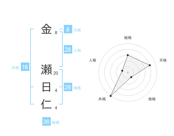 金 瀬日仁さんを姓名の画数から五運を鑑定
