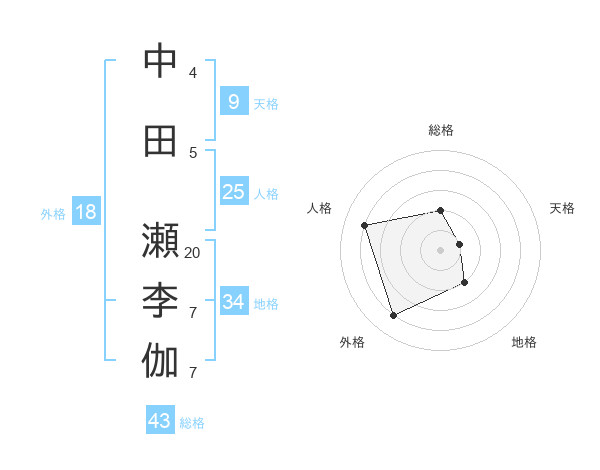 中田 瀬李伽さんを姓名の画数から五運を鑑定