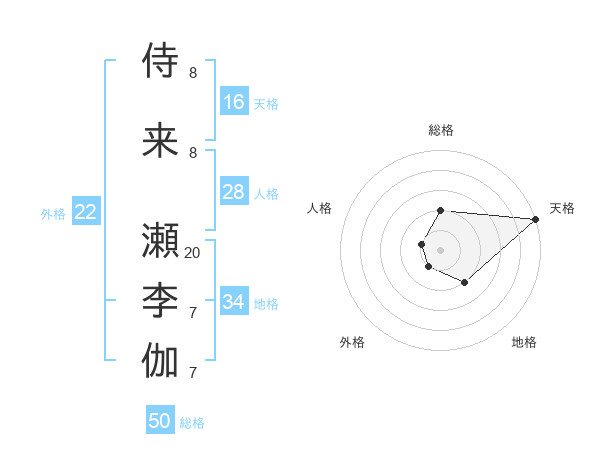 侍来 瀬李伽さんの総格は50画の2点!
