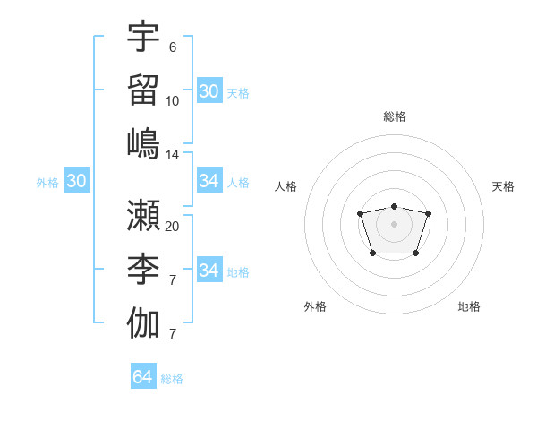宇留嶋 瀬李伽さんの総格は64画の1点!