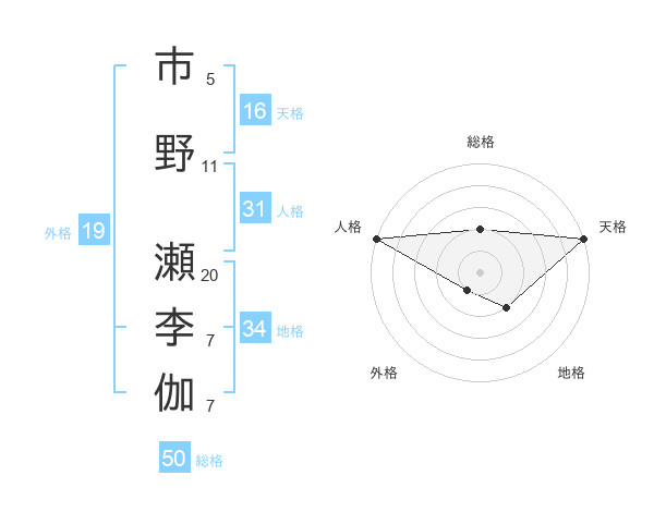 市野 瀬李伽さんを姓名の画数から五運を鑑定
