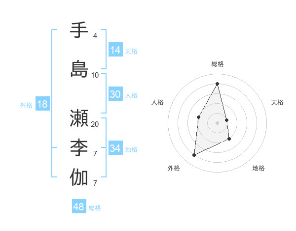 手島 瀬李伽さんの総格は48画の4点!