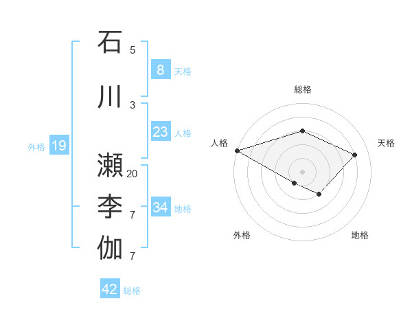 石川 瀬李伽さんの天格は8画の4点!