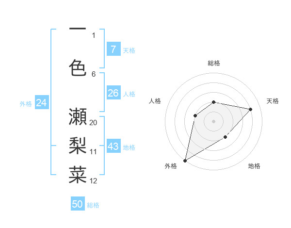 一色 瀬梨菜さんの総格は50画の2点!
